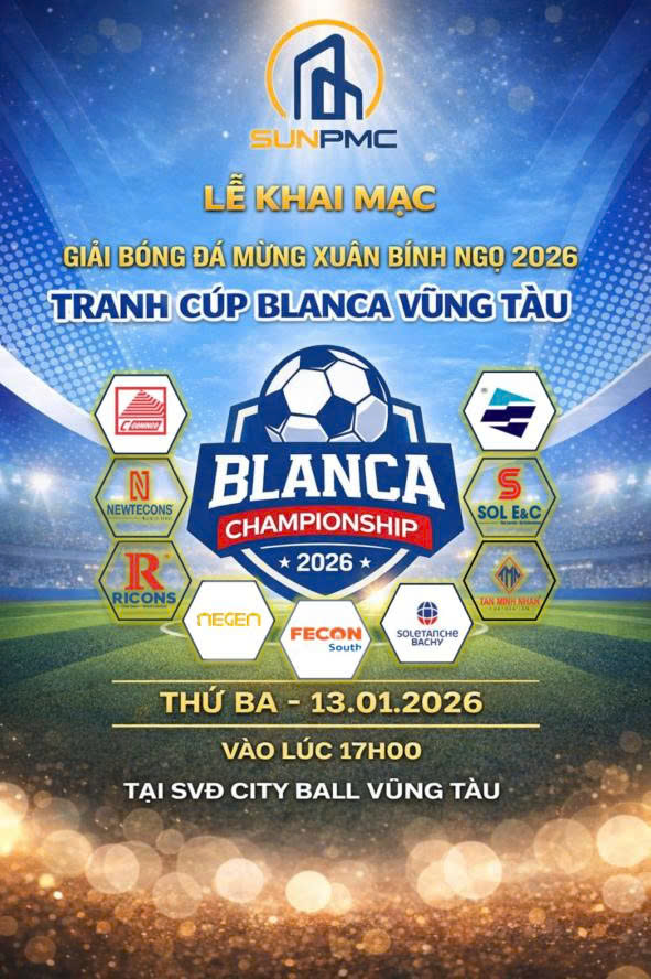 16/01/2026Từ 13/01/2026 đến 15/01/2026 Giải bóng đá Blanca City Vũng Tàu diễn ra với sự góp mặt của Negen và các công ty xây dựng bất động sản. Giải đấu diễn ra rất thành công và kết thúc vào chiều ngày 15/01/2026, tại sân bóng CityBall (TP. Vũng Tàu), nơi trận chung kết Giải bóng đá mừng Xuân Bính Ngọ 2026 – Tranh cúp Blanca City Vũng Tàu đã diễn ra trong không khí sôi động, hào hứng và đầy cảm xúc giữa LQ Công Viên Nước và NEGEN.