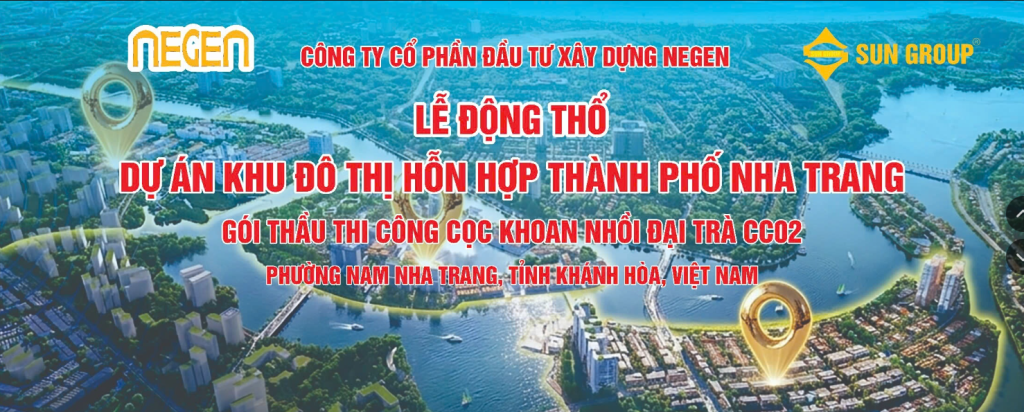 Công ty Cổ phần Đầu tư Xây dựng NEGEN chính thức tổ chức lễ động thổ và khởi công gói thầu thi công cọc khoan nhồi đại trà CC02 thuộc Dự án Khu đô thị hỗn hợp Thành phố Nha Trang – dự án do Sun Group làm chủ đầu tư.